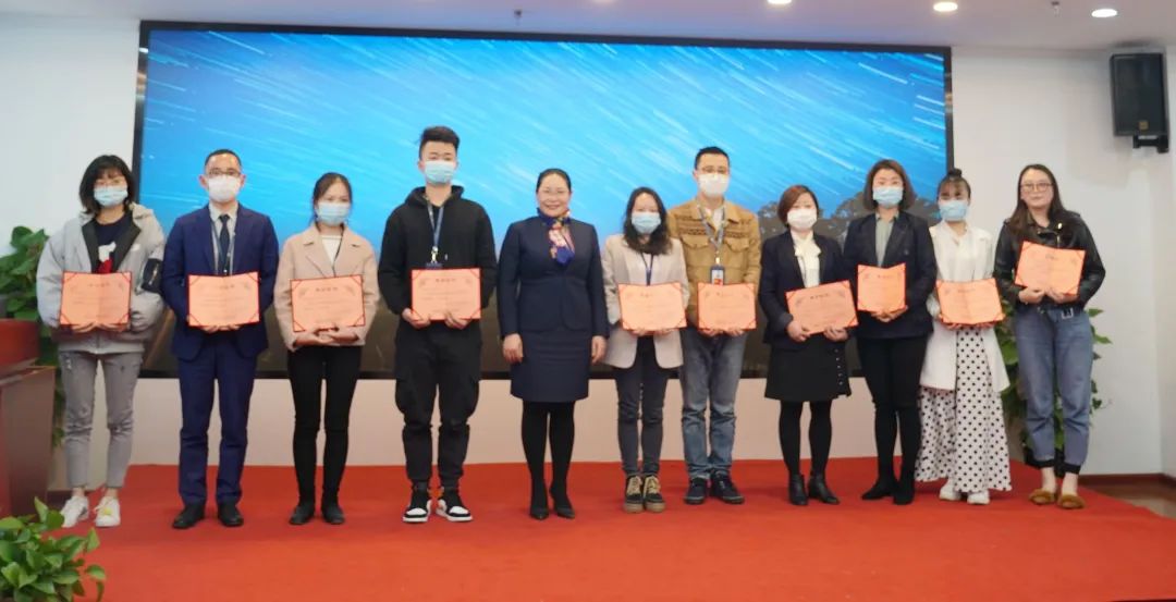 会上,还对今年3.21大会受到表彰的先进个人颁发了证书。林昕杨董事长,集团副总裁曾良斌、易家辉分别为创业奋斗者团队和职业奋斗者团队的获奖者颁证并合影留念。